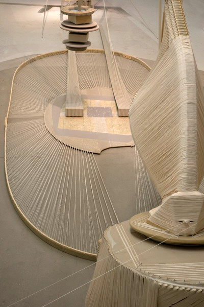 “Ta-rae”_240 Ⅹ 240 Ⅹ 144_装置 一万码长的亚洲棉线, 木料_2003
