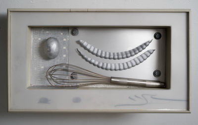 在林忠燮的创作中,存在着一些需要人们稍微停顿反复咀嚼的瞬间(moment)。这是因为,在他的作品所展现出的那种抽象性之中,同样也暗示着一种极端的事实性。他作品中的抽象性既是“体验的抽象性”,也是“思维的抽象性”。“体验的抽象性”再现了各个时间胶囊中所盛载的客观物体自身的记忆(Dialouge – Fossil - Scape Series, 2009)、创造性的想象力以及感觉变形之下的想象即“回想”。通过他的作品,人们可以感受到在“佛的双耳、彩绘、传统韩袍”等素材之中,飘散着一种古香古色的韩国情调;而这恰恰缘于作品对“同自然相逢”这种深刻体验的反映。并且,在由拾来的东西和窗户纸、木头、沙子等材料创作的作品包含着那种通过对“艺术家本人的记忆和物品自身所具有的记忆”进行“缩减”之后所达到的“思维抽象性”。