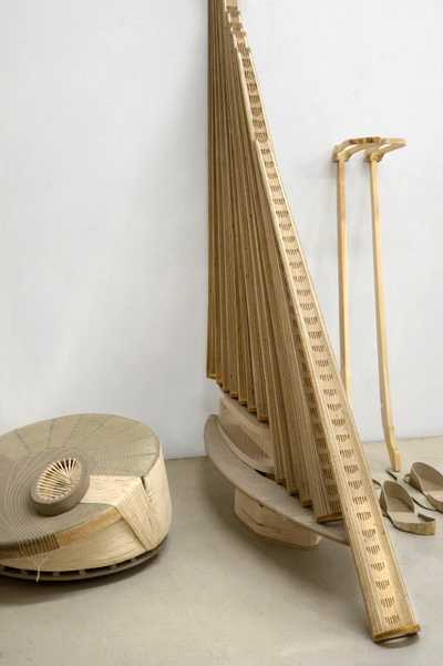 “Orum - Narim”_ 95 Ⅹ 60 Ⅹ 40_ 木料, 宣纸, 线, 墙面和地面_2000-2009