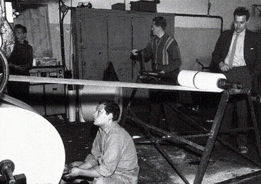 1960年7月4日,皮耶罗•曼佐尼在丹麦的Herning的报纸打印机前,进行《7200米线》的创作