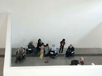 展览展出的所有作品或处于半静止状态,或在某些情况下静止,或在其他情况下连续地缓慢移动,使得人们停留得更久,从理性和感性两方面关注着作品。主展厅将展示孙原和彭禹的3个作品:作品“老人院”中十三位轮椅上的老人带给参观者无法否认的强烈震撼,一个巨大的垃圾车不停地撞击着“老人院”的外墙。因此,孙原和彭禹再次消除了艺术和公众之间的隔阂,有效地迫使参观者从生理上和心理上参与进作品中。作为一个绝对内向的和善于思考的艺术家,萨布琳娜·梅扎奎把她的注意力集中在生活中细微而敏感的事物上,并展示在她独一无二的视频作品中。伊利亚·卡巴科夫对现代社会的描绘被“凝结”在墙上,没有明显移动的事物。艺术家阚萱拍摄了一组保安,传达出一种压迫性的包围感。艺术家汗斯·欧普·德·贝客把世界变成了深浅不一的灰色,让观众感觉可能在天堂也可能在地狱。 ⊙记者 杨琳