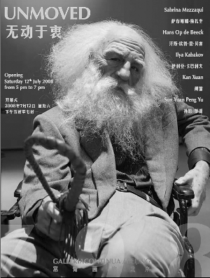 7月12日,“无动于衷”中西艺术家群展开幕式在北京常青画廊召开,参加展览的艺术家包括伊利亚·卡巴科夫、阚萱、萨布琳娜·梅扎奎、汗斯·欧普·德·贝客以及孙原和彭禹。
