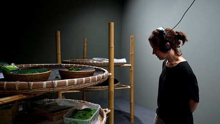 在这场展览中,几乎每一件作品都具备一种邂逅的能量。你会遇到巨型甲虫和超现实的三角龙,它用带有几分警觉性的眼睛朝你“抛媚眼”;你还会偶遇正在忙碌的蚕,它们用银白色的蚕丝将东西牢牢密封起来。9位艺术家——陈箴、段英梅、顾德新、梁绍基、彭禹和孙原、汪建伟、徐震、没顶公司——为这场展览带来了他们在过去30年中创作的装置、影像作品以及许多现场表演。如果你认为这听起来与Hayward画廊举办的其它展览没什么两样的话,那么你应该意识到它让我们感觉到我们对东方艺术的熟悉还有很长的路要走。