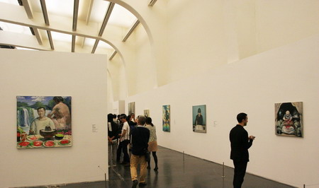 尤伦斯当代艺术中心的展览“王兴伟”展出了艺术家从1993年至今二十年间的74件绘画作品,几乎囊括了王兴伟各阶段的重要作品。这是王兴伟的第一次美术馆规模的大型个展,同样也是尤伦斯大展厅空间首次用于呈现纯绘画的个展项目。展览“王兴伟”并没有采用了常规的与按时间梳理的回顾展的展览体例,而是选择以画家与描绘对象及观众与观看对象这两对关系作为线索,将展览划分为三个单元,即背面、侧面和正面。当被问及这样设计展览形制的原因时,王兴伟表示,一是其以人物为主的绘画作品形态比较丰富,这一分类学上划分的方法非常适宜;二也是为了区别于所谓“回顾展”的概念。他认为自己并非到了功成名就介绍自己的时候。