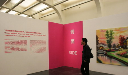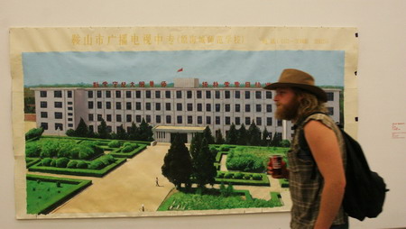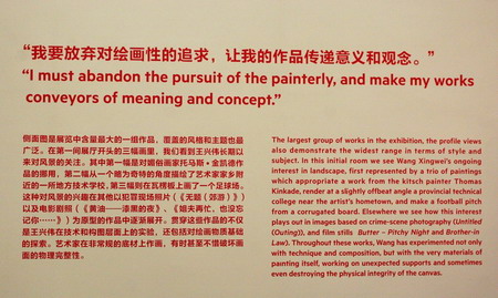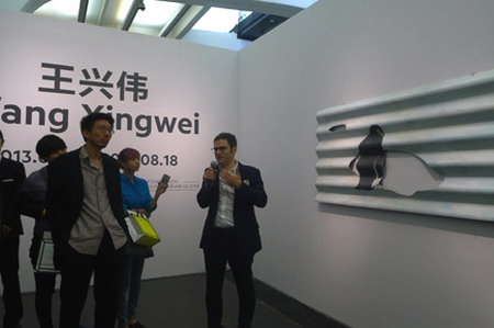 王兴伟个展由UCCA馆长田霏宇策划,他同时为媒体导览了这一重量级的回顾展。
