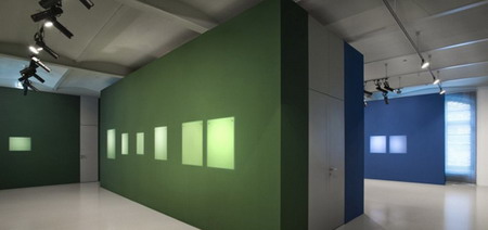 在这场展览中,出于对颠覆性展览形式的热爱与对每一天中那些并不耀眼的时光的着迷,汉斯-彼得·费尔德曼(Hans-Peter Feldmann)将发光的矩形投映在了蓝色和绿色的墙面上,墙面上还固定着用来挂画的钩子,这些都会让人联想到博物馆的展览空间。通过这场展览,汉斯-彼得·费尔德曼(Hans-Peter Feldmann)以一种非常真挚的方式表达了对艺术市场的轻视,为观众呈现了发生在交易和展览中的那些意想不到的美丽。忽略掉场景然后在短暂的时间里发现艺术,汉斯-彼得·费尔德曼(Hans-Peter Feldmann)再次肯定了“普通生活”的艺术价值。