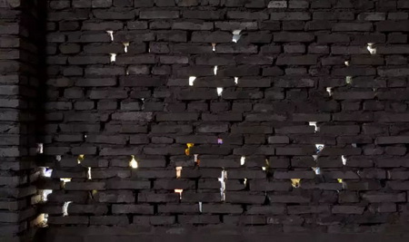 ▲ 序曲|视频装置(投影机, 金属支架, LED, 砖墙)|尺寸可变|2014