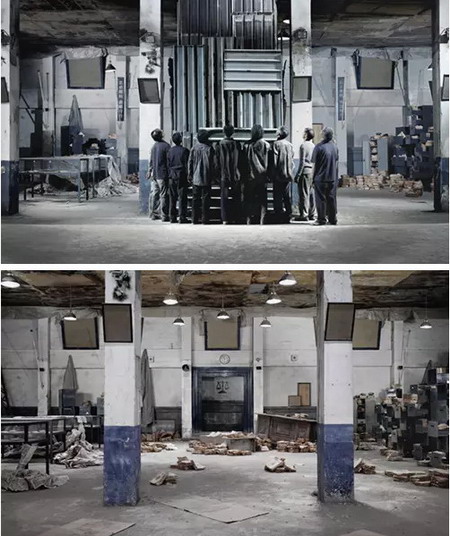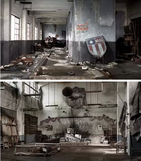这个当代意义,就是非西方世界的现代化经验。这个经验,以被凌迟者被割掉胸口后的两个洞口为通道,进行展示。画面进入通道后,呈现的是被英法联军和八国联军摧毁的北京圆明园、日本731部队在哈尔滨设立的人体实验室、冷战时期台湾的政治犯监狱、跨国企业遗留在台湾的重污染地区,以及台湾产业外移后的工厂废墟。正如陈界仁在拍片之前便思考的“反过来看摄影”,他把摄影机掉转过头,从受刑者身体内部往外看,通过两个洞口所看到的,是历史上的西方摄影师,和当代的失业劳工群像。
