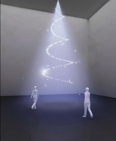 由不同高度的透明材质数字悬挂组成,结合雾气、灯光、影像等不同手段创造特别的空间体验。力图表达空间与次生空间的关系,用数字这个基点作为一部分相对静止的空间,来作为角度参照。通过在整个空间中寻找LEA个体作为线索,来暗喻真实空间和虚拟次生空间的位置关系。