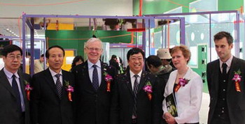 瑞典驻中国大使林川(左三)、中国科技馆馆长徐岩豪(右三)、瑞典对外交流委员会伯尔吉达女士(右二)、中国科技馆副馆长赵有利(左二)、展览策划执行人玛格努斯先生(右一)等在开幕式上合影