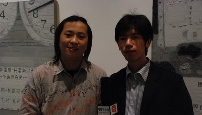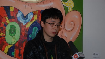 展览现场 年轻艺术家王玺 在其作品前接受99艺术网采访