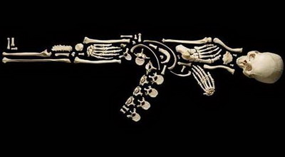 他解释道:“每幅图像都是一场战争或一次暴力行动的象征,比如:一杆枪或一辆坦克。我希望由此展示悲惨的人类骨骼往往都是这类暴力行动留下的遗骸。战争过后,剩下的只有累累白骨。”
