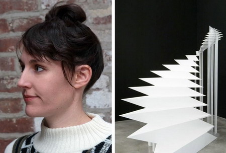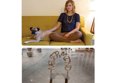 汉森说:“我倾向于对现成的物品进行改造——比如后院中的垃圾、残破的家具,依靠闪耀、古怪和炫丽的技巧将他们重新组合在一起。”她在作品中使用的材料会能让唤起对于她曾探索的偏远之地的记忆。“我仍然喜欢看一些东西被一起放在小乡镇的那种样子,有些在美感上有所退化,这只是为了将作品完成的权宜之计”,汉森解释说,“我创作的东西看上去都似乎轻飘飘的。他们看上去能分解、打包带走,然后装上车运到下个城镇去——有点像旅行马戏团马戏团。”