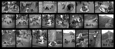 第二次爬行是2001年10月,我带着妻子和儿子到八达岭做了一次长城上爬行的行为活动,长城是中华民族的象征,是抵抗外族侵略的防御系统,也是在月球上看到地球唯一的人类建造物,对与我来说长城墙也是一堵心里之墙,要超越它使我从其束缚中解放出来,就从权力的固执中解脱出来,爬长城给一家人留下了很多美好的东西,也让我们一家人在家躺了几天。