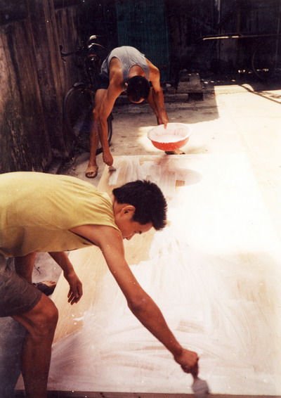 1995年我受聘福建一所中专当教师,要离开湖北前想把门前的一条小路打扫干净,在那住了几年,路非常脏没有人打扫。我邀请两位朋友,拿着扫帚和铁锹,冒着夏天40度的高温,我们一筐一筐用三个小时把这条道路打扫干净,接着用水冲洗我家后院青草,最后我与青草一起沐浴,那一瞬间我完全陶醉了。第二天我提着黑皮箱带着到福建拓展艺术和生活的概念走出了家门。 (文/华继明 《关于十年来的行为》)