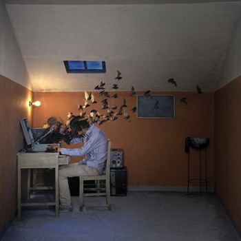 魔术既是骗术,艺术亦是。欺骗是一种精密的学问,一场华丽的表演,人在被欺骗时往往会获得陷入的快感。骗术需要牺牲,牺牲需要被掩盖,这都是为了隐瞒最后的谜底。在《失控的魔术》中,一叠被牺牲了的巨大的白色鸽子被裸露在舞台上,代替了魔术滴水不漏的成功,使这个美好的谎言的结局变得可怕。这让人想起电影《致命魔术师》里,为了完成终极的大变活人的分身术时,魔术师必须面对的一个选择,究竟是演双簧说一辈子的谎言,还是每一次谋杀一个复制的自己。现实有太多残酷,面对真相,我们更愿意选择在麻木中被愚弄。这种舞台的魔术气质,也同样出现在《一口痰》和《永不消逝的电波》中,一种来自伪高科技,伪天文学,伪巫术的相互结合的意外之中。那些带着心理上、生理上的忌讳和不祥的预感的物品反复的出现在照片的角落,黑猫,蝙蝠,猫头鹰,老鼠和老鼠夹……,隐蔽更增添了一种寓言式的色彩。制作和摆拍的方式使摄影这个确认为真的技术成为幻术,而陈维试图通过这种摆拍的幻术来映射内心世界中不可琢磨的现实。