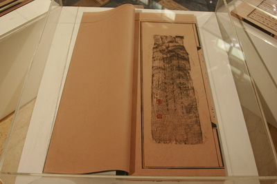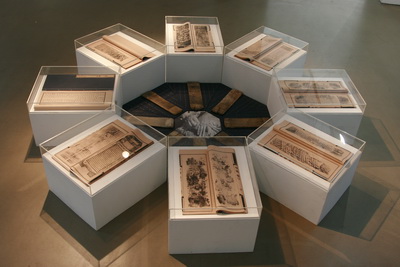 女书 装置+录像 线装书、亚克力透明罩、旧搓衣板、投影 320×320×80cm 2008 陶艾民