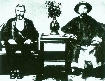 1879年,美国前总统格兰特(左)和李鸿章(右)在一起。