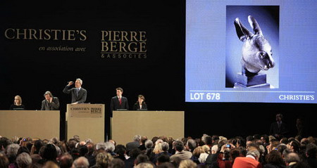 这次为期三天的法国时装设计师伊夫·圣洛朗与其同伴皮埃尔·贝尔热“珍藏专场”拍卖会,共有拍品七百余件,在一八六0年战争期间被英法联军劫掠走并流失海外多年的中国圆明园流失文物鼠首和兔首铜像属于高价拍品之一。