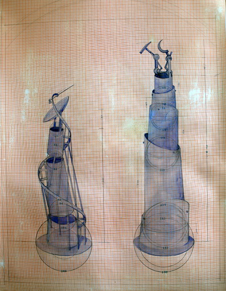 Lu Lei, The tower in the end (Sketch of installation), Pencil on paper, 30×39 inch, 2011