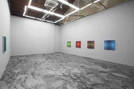 此次展览,北京公社和艺术家花了大量的心思和精力进行布展。展厅的地面全部被垃圾场的黑白照片铺满,展厅墙壁也被刷成理性的高级灰,和色彩艳丽斑斓的绘画形成了鲜明的对比。“我的工作室黑桥附近有一大片垃圾场,这很象中国当下的状况,是我作品创作生长的背景。在这种混乱的背景下,我只有在创作中追求一种理性的极致。”