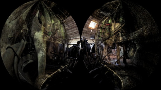 简而言之,元宇宙让人们在虚拟世界里更有“在场”的感觉,能够模拟或超越人在现实世界的行为,并予以共享。比如说下面这件作品是让观者感受到奶牛的感知和听觉。