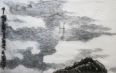 The Most Beautiful Country of China: Sail in Clouds above the Sea, 2007, 140 x 230c, Ink & Colour on Silk