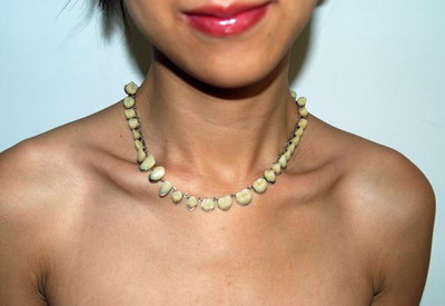 但另外一方面,我们可以发现,艺术家同时也在企图对抗和消解这种脆弱感。展厅入口微微颤动的发丝网以一种顽固的蔓延姿态占据了粗糙、廉价的背纸,将看似随时可能崩溃的“脆弱”转变成了一种“牢固”;佩戴在艺术家胸前的祖父脱落的牙齿,似乎又暗示着她企图通过时间感来寻找对亲密关系的一种确定把握。或许,艺术家正是通过这种努力,重建着经验的有效性和对经验的信任。