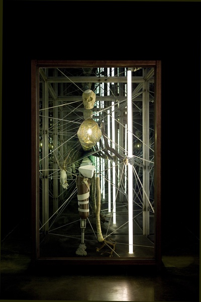 马修•戴•杰克逊《同伴》,2010 铁、不锈钢、塑料、胶合板、铝、木料、铅、青铜、霓虹灯 144.15 x 93.98 x 233.68 cm 展览现场摄影师/唐萱 图片由尤伦斯当代艺术中心提供