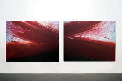 巴纳比•弗纳斯《红海(临近)》,2009 丙烯、水分散颜料、染料、亚麻 259 x 670 cm 展览现场摄影师/:唐萱 图片由尤伦斯当代艺术中心提供