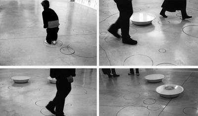 《Walking in Circles》艺术家在画廊地板上安装了一些有粘性的环状物,可以收集参观者鞋子上的污垢。