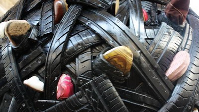 China Idle汽车轮胎,旧鞋,铁结构173 厘米 x 294 厘米2010年