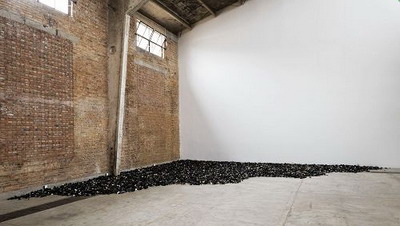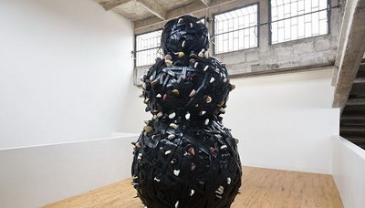 牙买加艺术家纳利·华德(1963年生于圣安德瑞,青年时期移居纽约哈莱姆,直到现在)以残留物、丢弃物和废料作为作品材料著称。 华德用双手在无区别的垃圾碎片中搜寻,在他的作品中,这些碎片几乎被赋予了“万物有灵论”的概念。在深远的宗教意志影响下,他从收集的物品中找寻与代代相传的恐惧和情感(生活、死亡、面临死亡、疼痛、欢乐、寻找本源)相关联的存在和故事。他编织原始的叙述线,给予材质新的灵性,赋予材质新的属性。纳利·华德所用的物品都承载着故事和记忆,表达着接近、偶然和短暂。这些被赋予了强烈的肉体和情感共鸣的材质其实是在说我们。它们呈现在这次展览的两件作品中。一件是特别为画廊制作的作品,放置于画廊的一层,另一件是用旧鞋和废旧轮胎组成的类似图腾的雕塑——“中国闲置”。