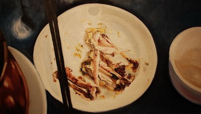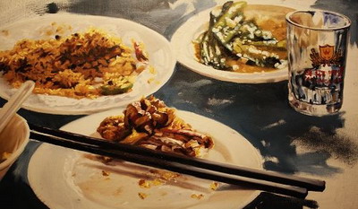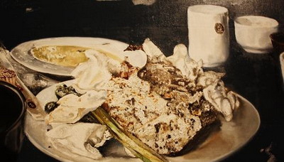 苏伯德·古普塔(克高尔1964,生活工作在印度新德里)是印度当代艺术的标志性人物。在他的绘画、雕塑、装置和视频作品中,艺术家深入探讨了旧时代和社会追求的现代化幻想之间的关系。日常用品被用来象征经历加速变更时期的社会, 传统的根基和现代的欲望纠结不清。在此次展览中,他展示了一系列新绘画,描绘了残羹剩饭和没收拾的饭桌,是对展出他作品的国家的一种可见的赞颂。用现实主义的手法和明亮清晰的颜色,这些静态的生命被古普塔呈现在精美华丽的16世纪风格的画框中。