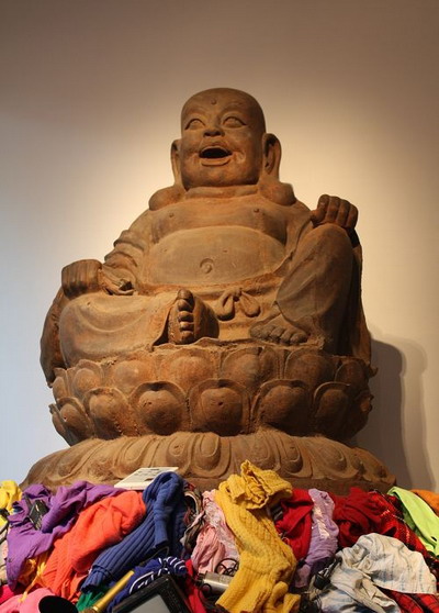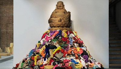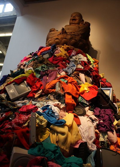 纪念·残留金属佛雕塑,旧衣服,电器构件,木头可变尺寸2010年