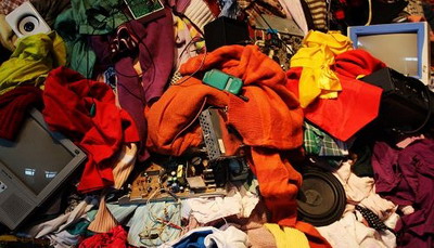 纪念·残留(局部)金属佛雕塑,旧衣服,电器构件,木头可变尺寸2010年