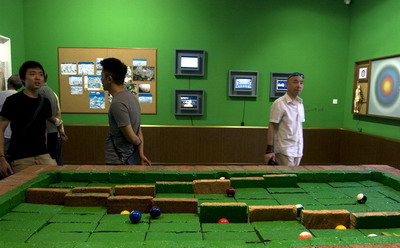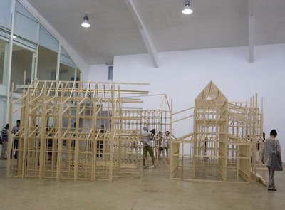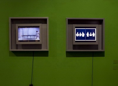 另外一个词语就是“游戏”,在徐坦的冠词厨房里面明确的提出了这个词。也提到贡布里希的“游戏的高度严肃性”。一个叫约翰 赫伊金哈的荷兰人还有一本书叫“游戏的人”更是明确提出游戏观念是世界生活及运作的关键部分,文化自身在很大部分上就是游戏。在“关系美学”那篇文章里面更是直接说出“艺术就是一场游戏”。而关系美学对于理解本次展览来讲似乎成了必要的课前预习。“游戏”观光在展览理论上多次出现,起其实在现场作品里也不光只有徐坦一人,李青的作品更是赤裸裸的写着游戏二字,而石青对于所谓“生产关系”的这次尝试,在一定程度上是与徐坦相反的同样的一次游戏。