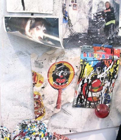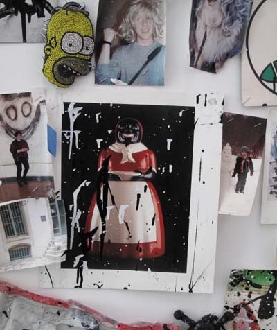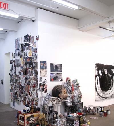除了乔伊斯的蝙蝠侠意象之外,小丑、霍默·辛普森、米老鼠等卡通形象同样也被包含到了她的油画及素描中。此外,乔伊斯还将在整个展厅空间中展出由小装饰品、填充动物玩具等物品形成的“组装艺术品”;另外还有大概15到20张乔伊斯在她之前的工作室里拍下的照片,照片上记录了上述物品在一天之中的不同时间所呈现出来的令人惊叹的静态画面。通过这些或新或旧的媒介,乔伊斯继续了她对美国卡通文化的恶意的改变——她用快速而又确定的笔触“照亮”了隐藏在我们所熟悉的卡通形象中的黑暗。