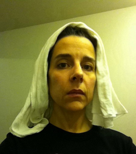 在尼娜(Nina Katchadourian)近日于Catherine Clark画廊举办的个展“Seat Assignment”中,她展出了近两年来在70多次航班上创作的一系列作品。许多艺术家在得知他们的工作室空间仅限于飞机座位和飞机上的洗手间这样的弹丸之地后会感到很惊恐,但尼娜(Nina Katchadourian)却将能够“随身携带工作室带”看作是一次有实质意义的机会。仅仅利用她的照相手机与手边现成的材料,这位艺术家创作出了各种风格的作品,从即兴创作的弗兰德斯风格的古典肖像画到微型的风景画等等。