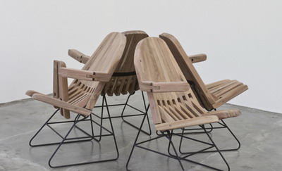 系列作品“Mano-sillas(Hand-chairs)”呈现了这位艺术家在之前就开始研究的雕塑与设计的交叉部分新的发展。其中每一件作品都由带有铰链式手指的一只左手和一只右手组成;它允许观众去创建动作,近一步探索了非语言行为的构成。