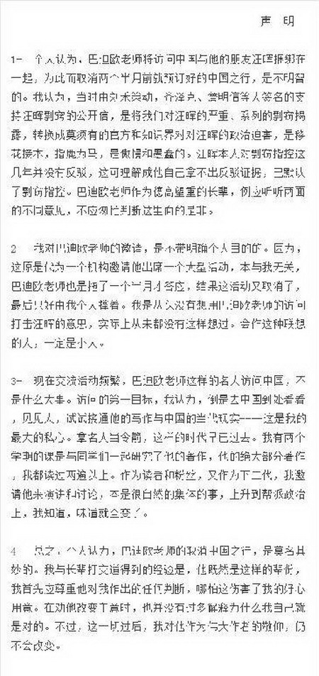 巴迪欧取消中国之行申明
