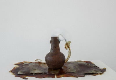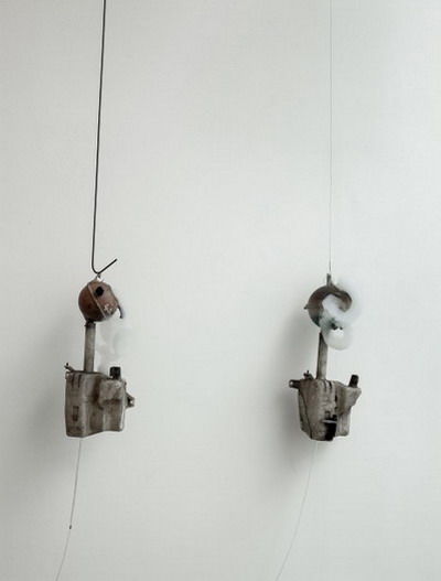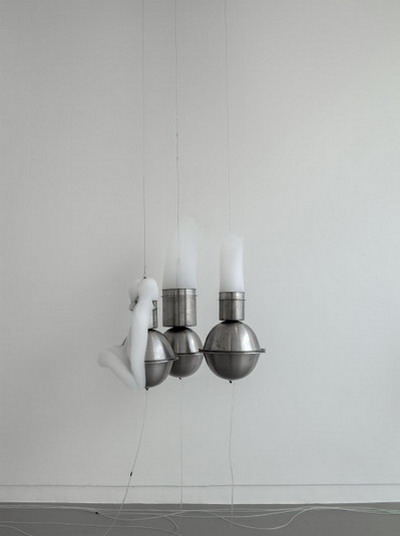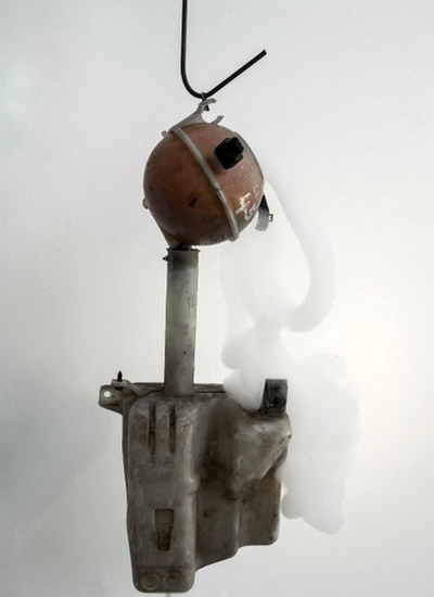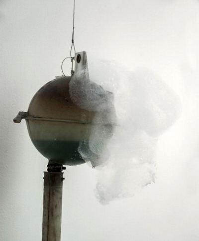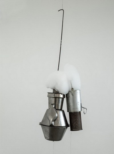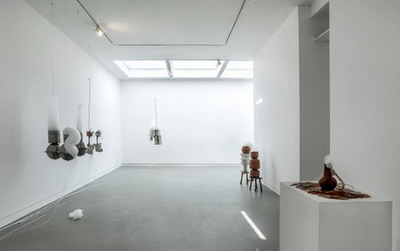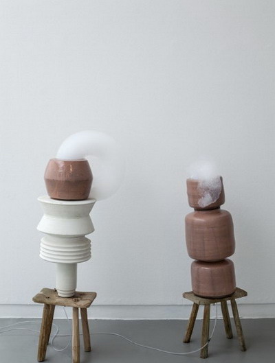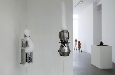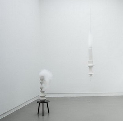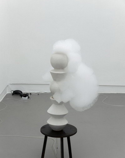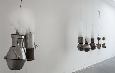 本次展出的作品同样具有自主性,自我生产的概念,而同时,它们也有自己特定的审美。所谓的“泡沫块(foam pieces)”,无论是悬挂在天花板上或者展示在木凳子上,它们都好像从什么都没有的情况开始,一直在不停的产生着泡沫。而陶瓷和钢花盆,这些花瓶和容器内都有洗涤剂、和使空气送入的小型压缩机。时间过去,肥皂水稳步向上,在爆破之前,形成泡泡,然后在地板上形成松垮的痕迹。