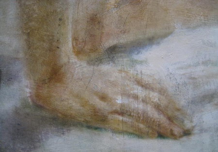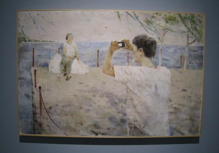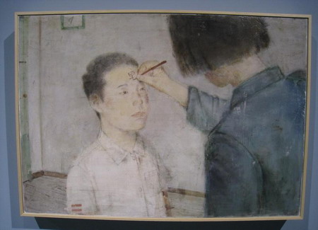 在夏禹近期的画作中,家庭成为叙事的核心——在树下合影的兄妹、为母亲照相的儿子、在孩儿额头上写下“早”字的母亲,等等,无一不吐露着家庭成员之间的默默温情。亲情在中国人心理结构的塑造方面至关重要,它是个体情感的温柔乡和庇护所,同时又是家庭内政与社会交往的重要驱动(曾经的中国可以被看做是一个亲属社会,这种社会形态在如今的三线城市和乡村之中仍某种程度上存在),但是,关于亲情的表达在当代文化语境并非新颖,夏禹的画因此看起来有一些怀旧,不那么时髦。与其说夏禹是对一种行将消逝之物充满留恋,不如说是在有意地认同或回归——他所讲述的是我们中的大多数曾经遭遇的情感体验,这些共同体验也许悄然塑造了我们所称谓的“民族性”?