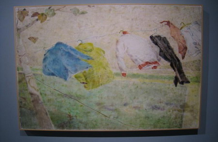 夏禹用坦培拉技法作画,与直接画法相比,坦培拉无法产生边缘锋利的笔触,覆盖力也很弱,它只能在不断的皴擦与荏苒光阴之中形成一种半透明、毛茸茸的画面质感。利用这种质感,夏禹发现了一种清凉、纯洁的绘画语言,这种语言与他的叙述恰如其分地互相融合,使得他的表达呈现一种友爱气质,充满关切,又不温不火。挂在晾衣绳上的衣物随风飘摇,在夏禹饶有兴致的表述下,让人体会到一种对日常的敬意。嘲讽一样事物或责备一个时代十分容易,我们的批判性总是错误地根植在与现实的敌意之中,而夏禹宁愿以一种温和的态度去打量那些再熟悉不过以至于被忽视的生活情状,正如他在崇奉的前辈丰子恺先生那里所学到的。