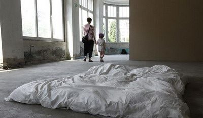 现场行为作品:新闻朗诵 尼古拉斯-布斯曼《新闻蓝调》 每隔45分钟表演者会休息一次。