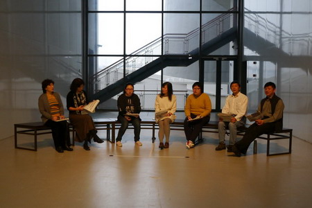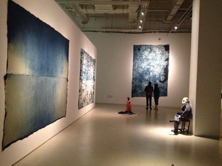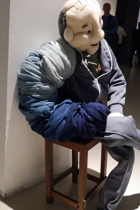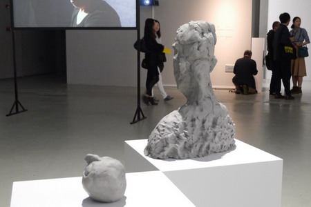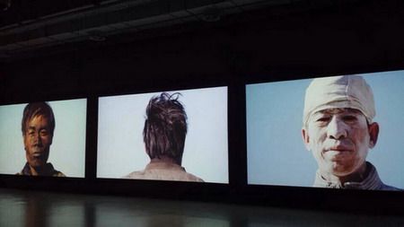 李秀勤 《触像》 是一组盲人的雕塑,现场还有一段表现盲人创作过程的影像
