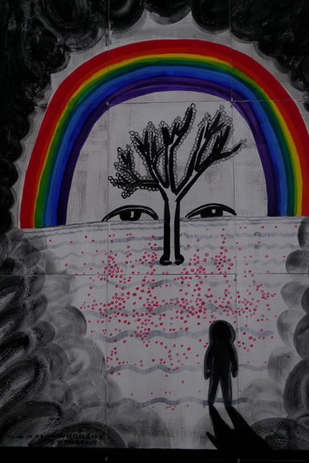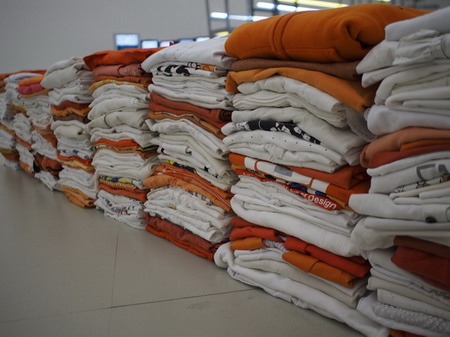 这件作品之前通过微信等网络平台召集大家自愿捐衣物,只限橙色与白色