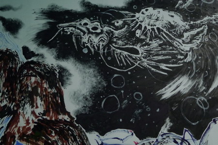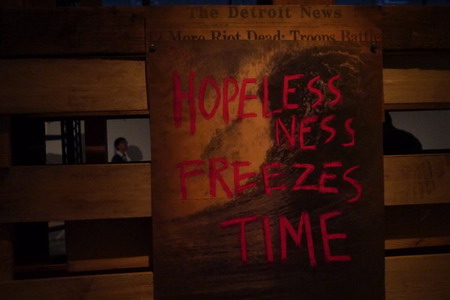艾德加-阿思诺的一组作品《运算不爱你:从底特律到上海》的一个主题:《底特律众神》 他用粘土、木炭和珐琅画了怪异的似人非人的形象。底特律是工业城,这种形象暗喻工业机制对人本性的一定程度的摧残。