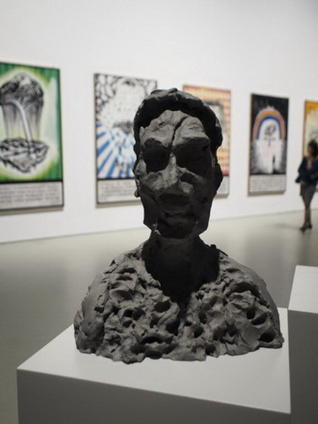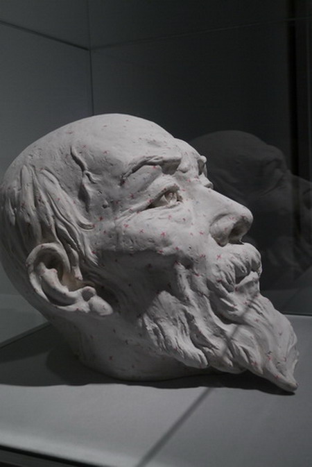刘鼎《为了一万个:老年英雄像》 2014 玻璃钢 刘鼎是依据老牌学院至今还坚持的所谓社会主义教学方法来制作了这么一个头像,似乎故意以一板一眼的高技术含量技法反讽了一把意识形态美学。