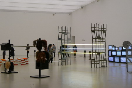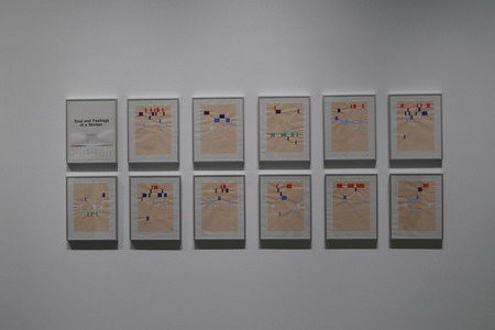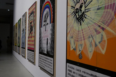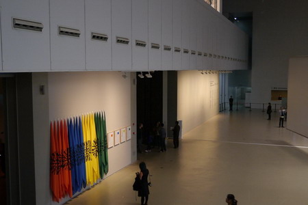 左面展墙的装置作品为“艺术与语言”小组1978年的作品《组织的旗帜》每个颜色代表不同的组织含义
